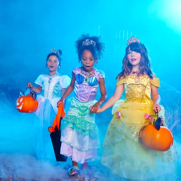 Relive a tale as old as time in our enchanting costume inspired by Belle’s ballgown in Beauty and the Beast. Delicate rosettes, a jeweled brooch, layered skirts, golden filigree and trims create a miraculous transformation.