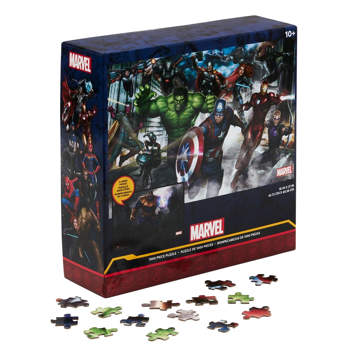 Avengers assemble as a 1,000-piece two-sided jigsaw puzzle with art inspired by the Marvel Studios films. You’ll have a super time putting it all together.