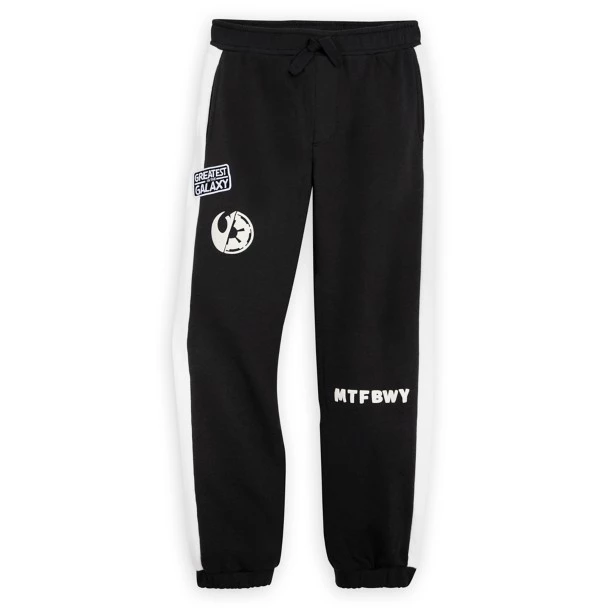 Let your little rebel leader show off their allegiance to the Star Wars saga with these comfy sweatpants. Featuring a split Rebel and Empire symbol, puffy ink ”MTFBWY” text, a ”Greatest in the Galaxy” embroidered patch appliquΓ© and cozy fleece fabric, these bottoms are perfect for their next Star Wars movie marathon or galactic mission.