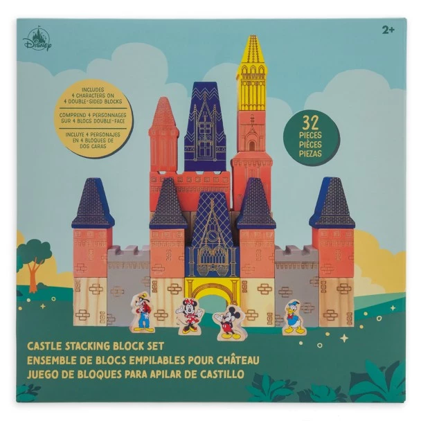 Celebrate 50 years of The Most Magical Place on Earth by building your own enchanting castle with this 32-piece wooden block set that includes Mickey, Minnie, Donald and Goofy.